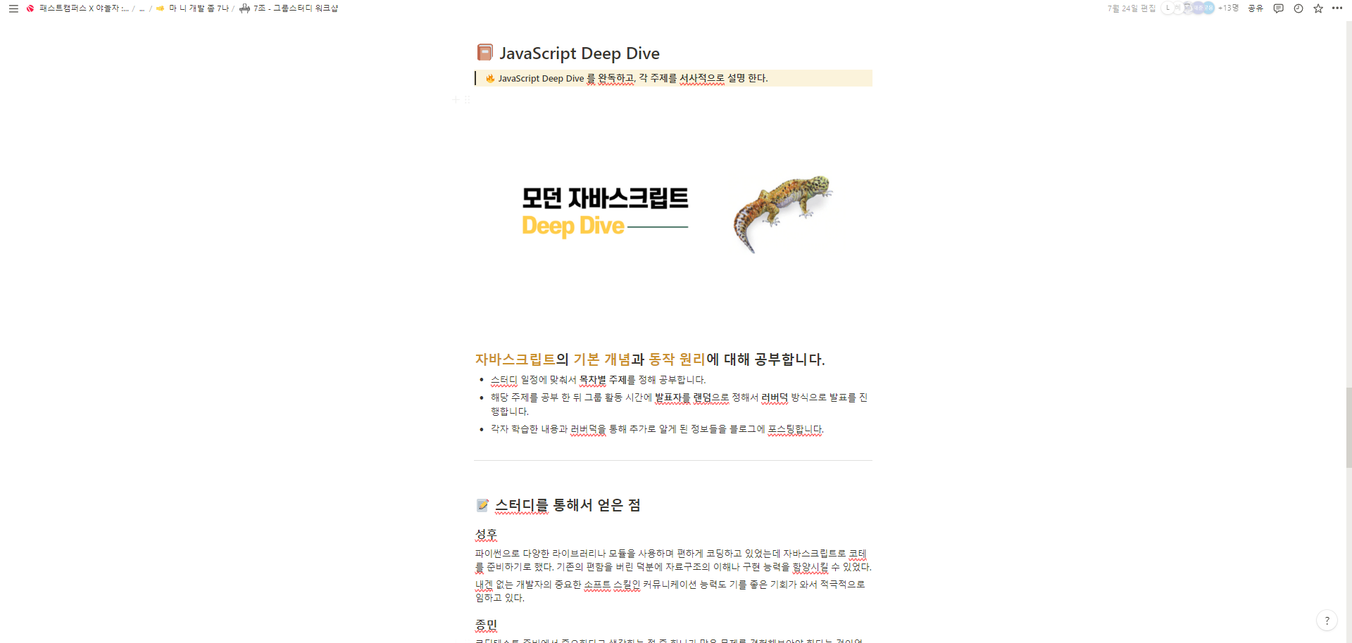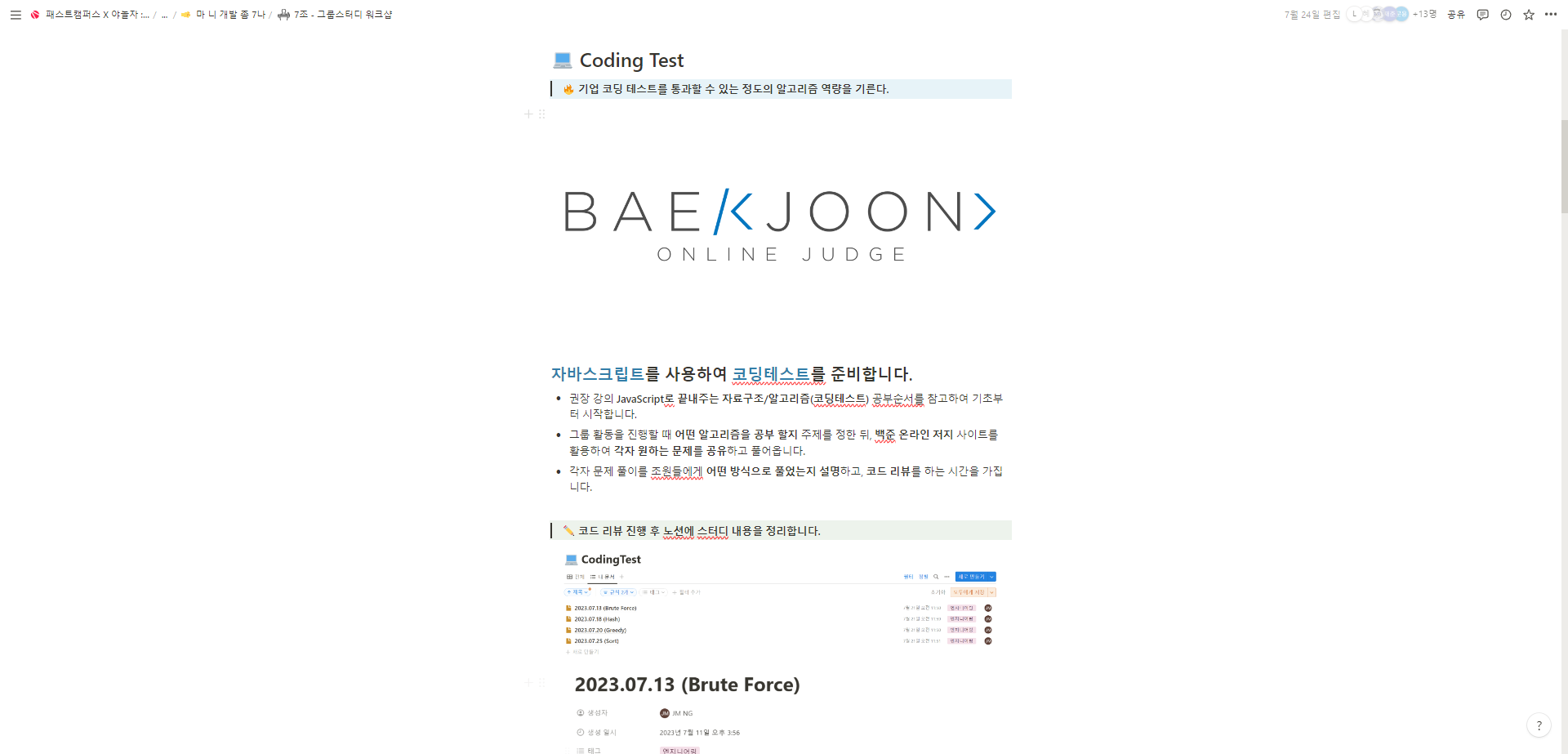 7월 24일에 그룹스터디 워크샵을 가졌습니다.