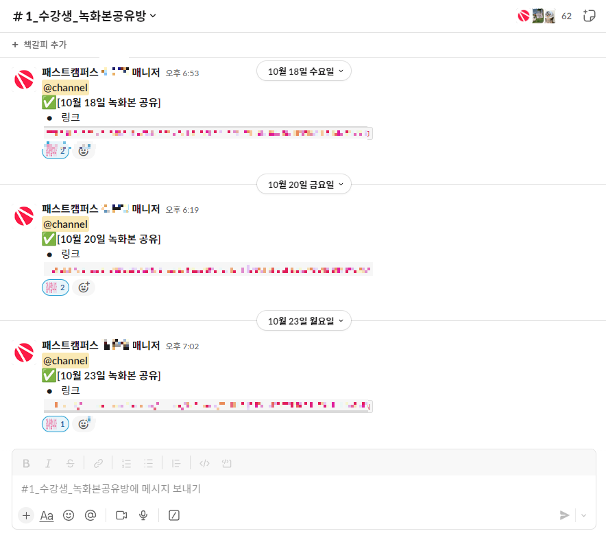 그래서 지금도 계속해서 수강생과 운영진이 소통하며 더 나은 환경을 제공하기 위해 노력하고 있습니다.