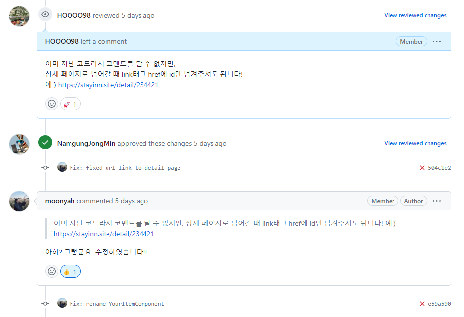 이번에는 다른 팀원의 코드에도 관심을 가지고 코멘트 또한 달아보았습니다.
