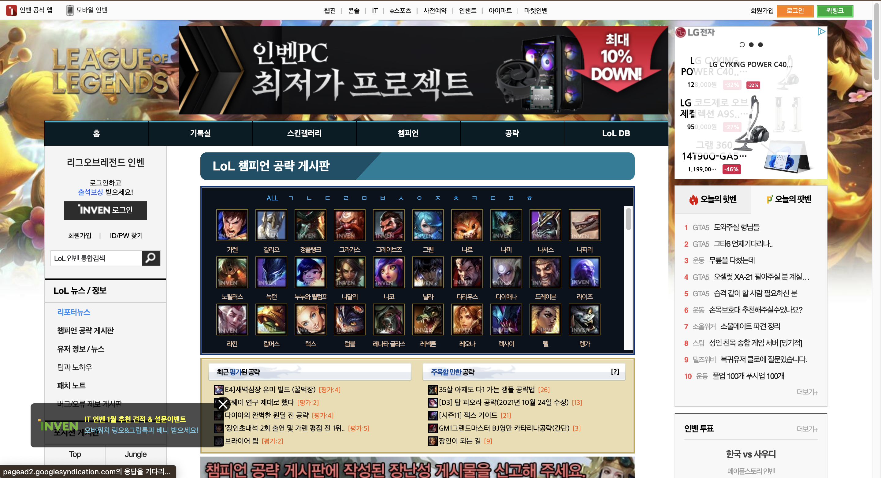 조금 유희를 담아 롤인벤(롤 이라는 게임의 캐릭터 정보, 공약을 공유하는 사이트)같은 사이트를 만들어 보려고 합니다.